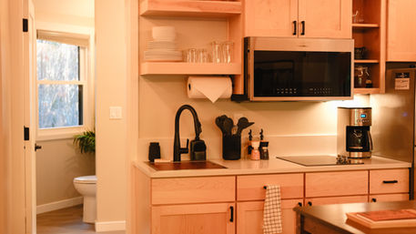 Our Safari Tents are available in one- or two-bedroom layouts, perfect for couples or families seeking forest immersion without sacrificing comfort. Each tent features one or two queen beds and a fully equipped kitchen with refrigerator, cooktop, and microwave—ideal for shared meals and morning coffee rituals.